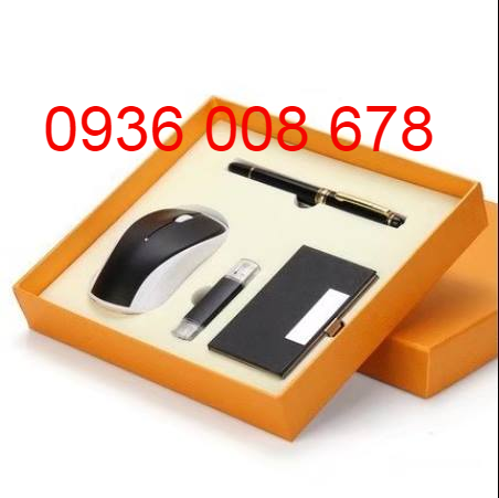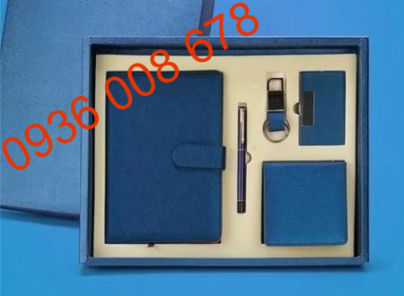 Bộ quà tặng namecard bút ký sổ tay lưu niệm, móc khóa, chuột máy tính in khắc logo làm quà tặng tri ân....
